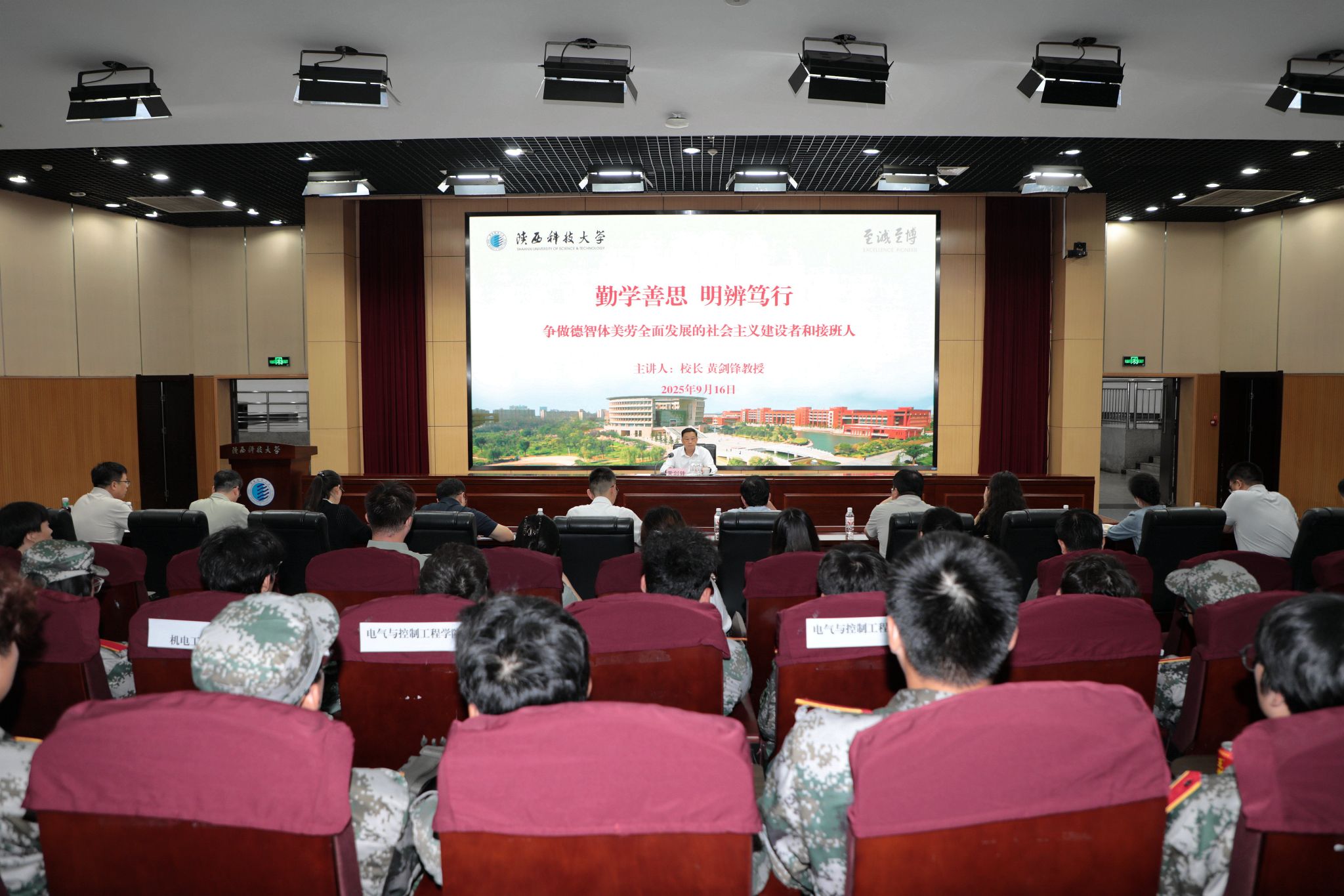 9月16日,陜西科技大學校長黃劍鋒以“勤學善思 明辨篤行 爭做德智體美勞全面發(fā)展的社會主義建設者和接班人”為題,為2025級新生講授“開學第一課”。