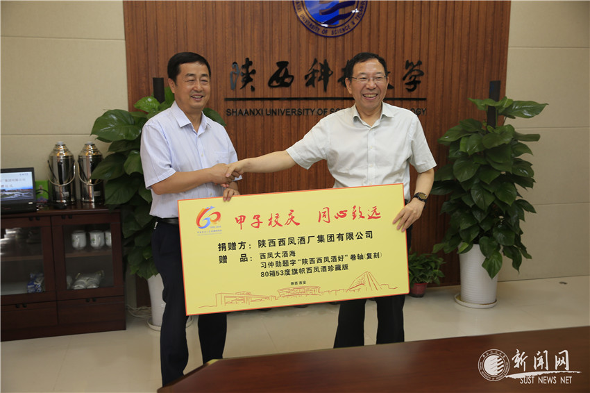 6月19日,陜西西鳳酒股份有限公司副董事長賈智勇一行來校,為陜西科技大學(xué)中國輕工業(yè)博物館捐贈西鳳大酒海等展品,祝賀我校60周年校慶。校黨委書記姚書志出席捐贈儀式并致辭,儀式由副校長李志健主持。