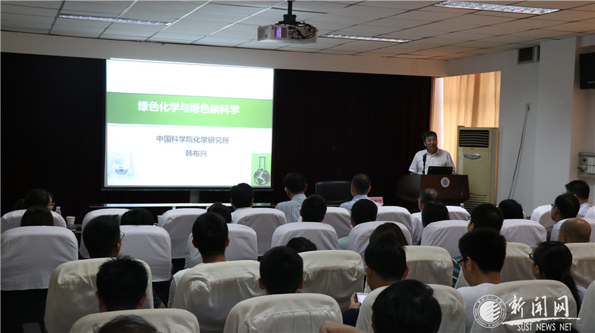 隨后,韓布興院士還在化工學(xué)院與青年教師進(jìn)行了座談交流,并為化工學(xué)院師生作了題為《綠色化學(xué)與綠色碳科學(xué)》的學(xué)術(shù)報(bào)告。