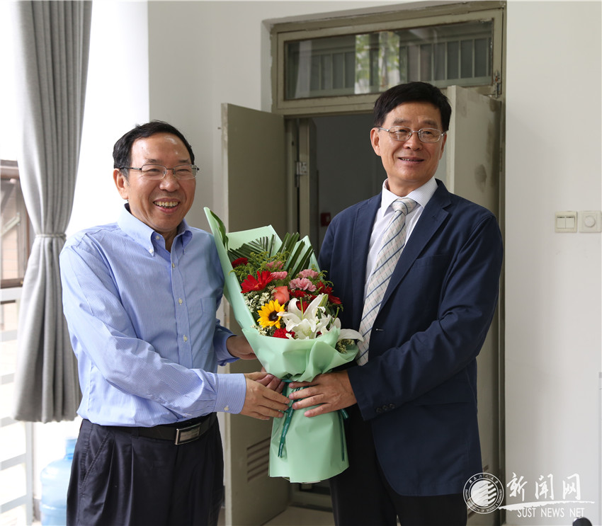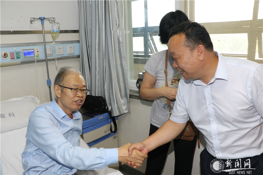 校黨委書記姚書志、副校長(zhǎng)黃劍鋒(右一)看望校學(xué)術(shù)骨干、電信學(xué)院雷濤教授