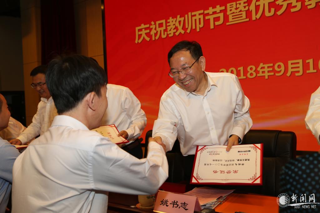 校黨委書記姚書志向2017年度優(yōu)秀教師及先進(jìn)工作者頒發(fā)榮譽(yù)證書