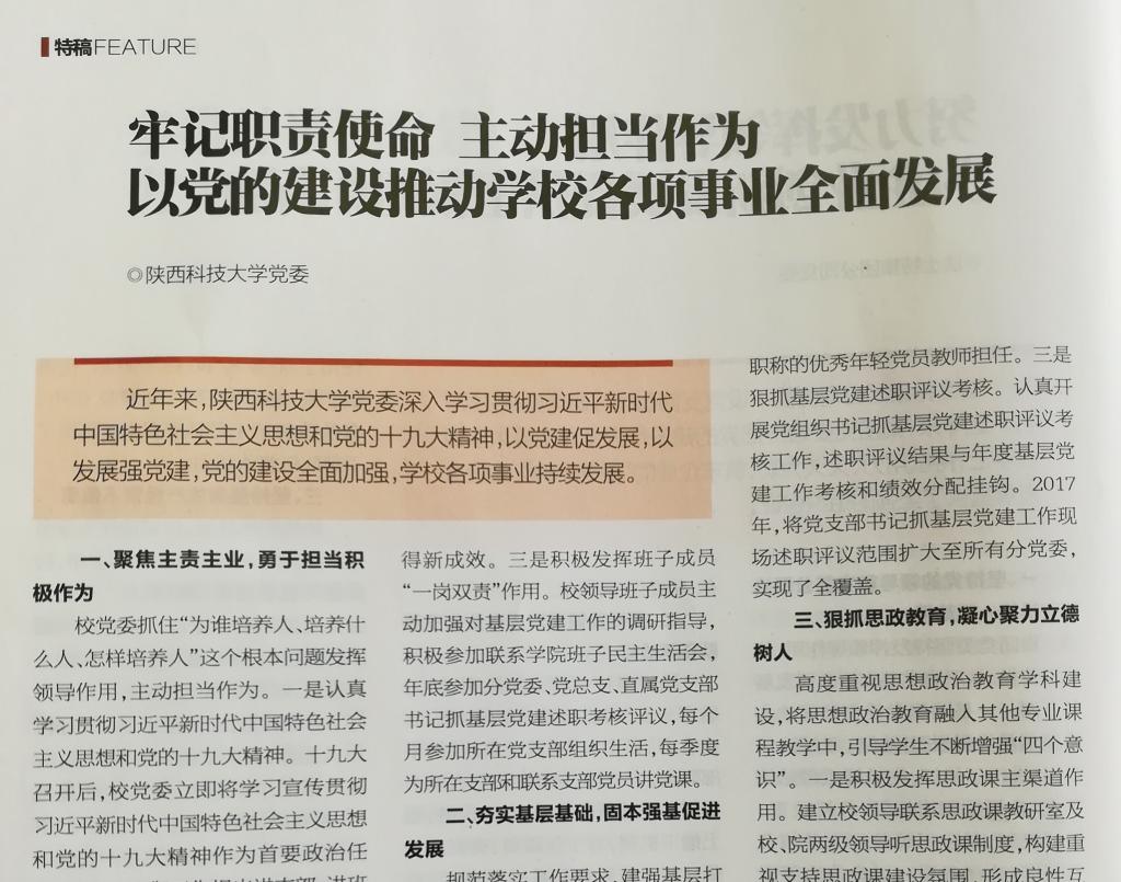 近年來,陜西科技大學黨委深入學習貫徹習近平新時代中國特色社會主義思想和黨的十九大精神,以黨建促發(fā)展,以發(fā)展強黨建,黨的建設全面加強,學校各項事業(yè)持續(xù)發(fā)展。