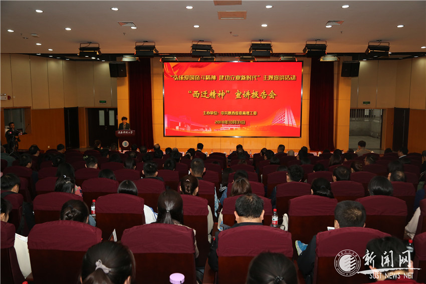 為深入學(xué)習(xí)貫徹習(xí)近平新時(shí)代中國特色社會(huì)主義思想和全國教育大會(huì)精神,陜西省委高教工委在全省高教系統(tǒng)廣泛開展“弘揚(yáng)愛國奮斗精神 建功立業(yè)新時(shí)代”活動(dòng)。10月31日下午,由陜西省委高教工委主辦的“弘揚(yáng)愛國奮斗精神 建功立業(yè)新時(shí)代”主題宣講活動(dòng)“西遷精神”第二場宣講報(bào)告會(huì)在我校圖書館學(xué)術(shù)報(bào)告廳舉行。陜西省委高教工委副書記陳乃霞,我校黨委書記姚書志、黨委副書記溫鋒、紀(jì)委書記王樹茂等出席報(bào)告會(huì)。西安交通大學(xué)“西遷人”愛國奮斗宣講團(tuán)由西安交大副校長鄭慶華,西遷老教授胡奈賽,中國科學(xué)院院士、西安交大電信學(xué)院教授管曉宏,生命學(xué)院教授徐峰,管理學(xué)院在讀博士生、科技扶貧博士團(tuán)成員林舒進(jìn)和《光明日?qǐng)?bào)》記者唐芊爾等成員組成。報(bào)告會(huì)由省委高教工委宣傳部部長冀映秋主持。