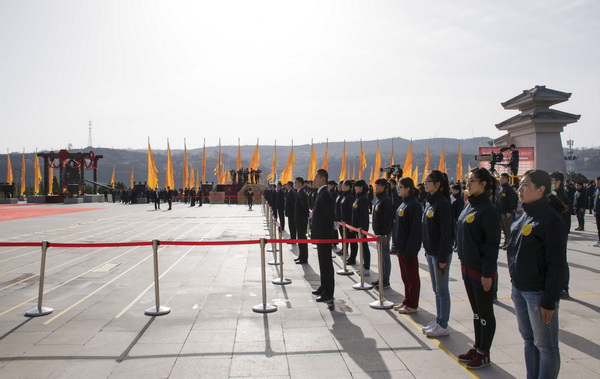 “我祖赫赫,開辟洪荒。功化神圣,世代仰望。”4月5日上午,備受矚目的乙未年(2015)清明公祭軒轅黃帝典禮在我省黃陵縣橋山黃帝陵祭祀廣場隆重舉行。萬余名海內外中華兒女代表,滿懷虔誠與崇敬之情,穿過軒轅橋,登上龍尾道,齊聚軒轅殿祭祀廣場,參加公祭活動。我校500名大學生,為公祭活動現(xiàn)場提供秩序維護志愿服務,成為典禮現(xiàn)場的一大亮點。