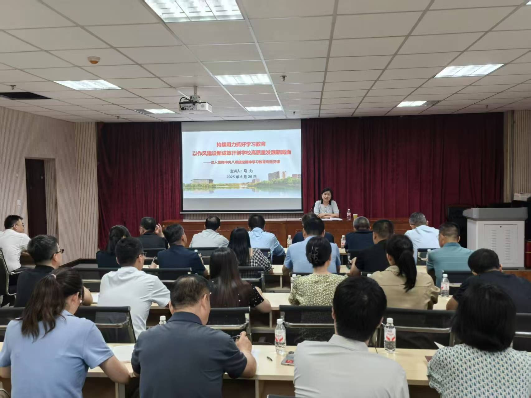 為進(jìn)一步加強作風(fēng)建設(shè),持續(xù)深化深入貫徹中央八項規(guī)定精神學(xué)習(xí)教育成效,6月26日,黨委委員、副校長馬力以《持續(xù)用力抓好學(xué)習(xí)教育,以作風(fēng)建設(shè)新成效開創(chuàng)學(xué)校高質(zhì)量發(fā)展新局面》為題,為分管部門、聯(lián)系學(xué)院班子成員和所在黨支部全體黨員講授作風(fēng)建設(shè)專題黨課。