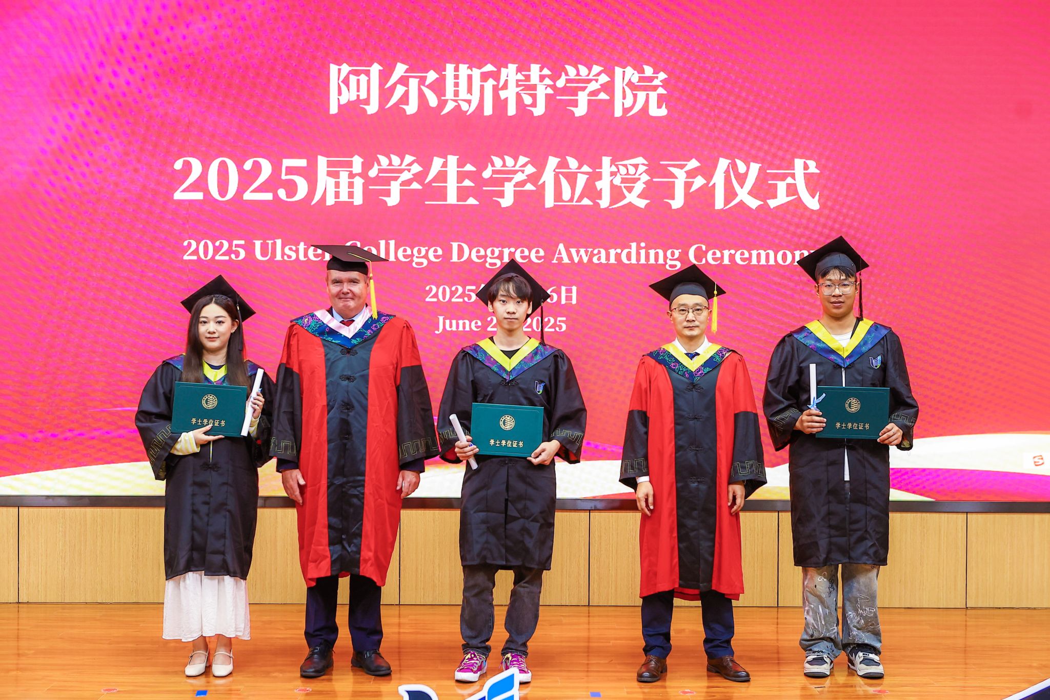 6月26日上午,陜西科技大學(xué)阿爾斯特學(xué)院2025屆畢業(yè)生學(xué)位授予儀式在學(xué)術(shù)報告廳隆重舉行。副校長費(fèi)貴強(qiáng)、阿爾斯特大學(xué)副校長Christopher Wigginton出席儀式,國際合作與交流處負(fù)責(zé)人、阿爾斯特大學(xué)相關(guān)負(fù)責(zé)人,學(xué)院領(lǐng)導(dǎo)班子成員、教師代表、2025屆全體畢業(yè)生及家長代表參加。儀式由學(xué)院常務(wù)副院長王偉偉主持。