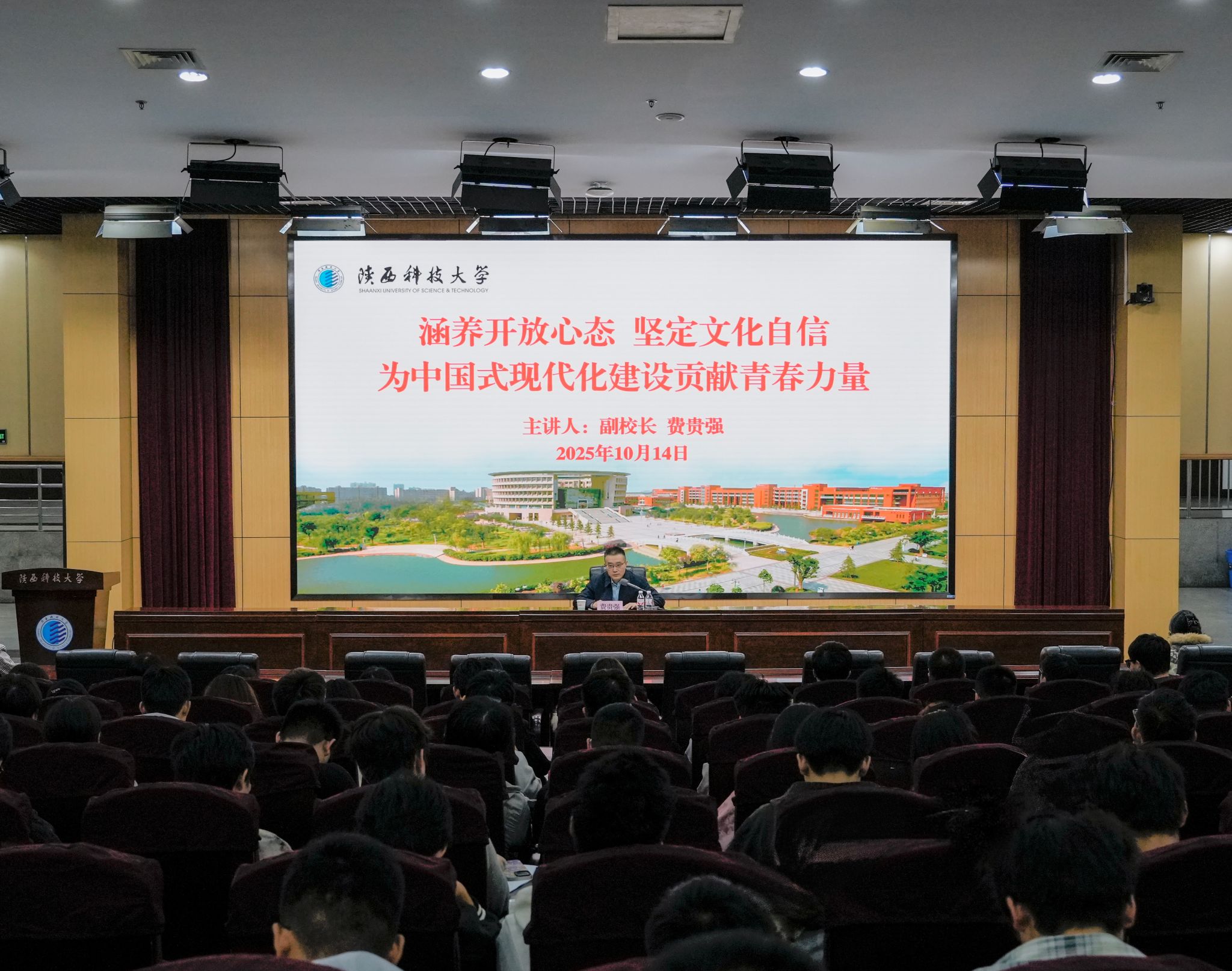 10月14日,陜西科技大學(xué)副校長(zhǎng)費(fèi)貴強(qiáng)以“涵養(yǎng)開(kāi)放心態(tài) 堅(jiān)定文化自信 為中國(guó)式現(xiàn)代化建設(shè)貢獻(xiàn)青春力量”為題,為2025級(jí)新生講授思政課。