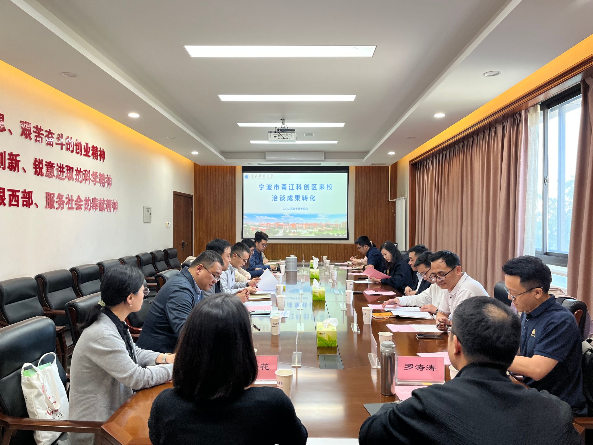 為深入貫徹落實學(xué)校第三次黨代會精神,扎實推進(jìn)服務(wù)社會創(chuàng)優(yōu)行動,深化產(chǎn)學(xué)研協(xié)同創(chuàng)新,10月15日下午,寧波市甬江科創(chuàng)辦副主任、高新區(qū)管委會副主任、黨工委委員俞承豪一行10人到陜西科技大學(xué),圍繞科技成果轉(zhuǎn)化開展座談交流。副校長費貴強出席并致辭,食品學(xué)院、電控學(xué)院、前沿院相關(guān)人員參加座談。會議由科技處副處長徐衛(wèi)濤主持。