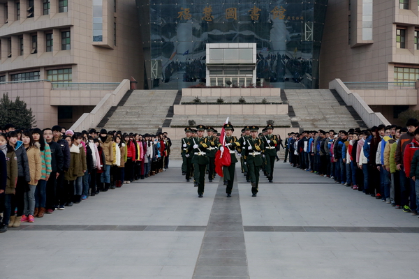 學(xué)校歷來重視國防教育工作,2014年學(xué)工部也將愛國主義教育列入工作要點(diǎn)。日常以國旗護(hù)衛(wèi)隊(duì)升旗活動為基礎(chǔ),在重大節(jié)日、重大事件節(jié)點(diǎn)配合學(xué)校相關(guān)部門和學(xué)生社團(tuán)做好主題宣傳活動。全年組織升旗儀式42次,共有24000人次參加,很大程度上提升了廣大師生的愛國主義熱情。