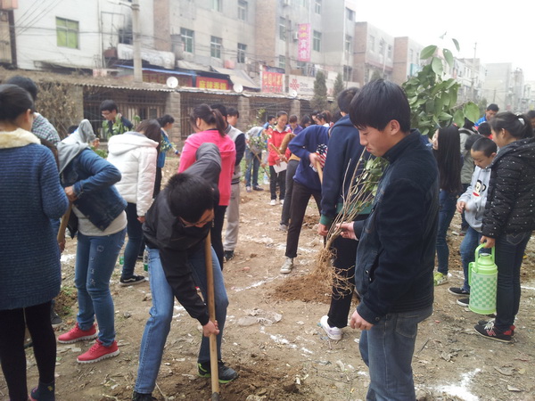 本次活動由輕工學院團委統(tǒng)一部署,大一、大二年級共計38個團支部組織100余名學生共同參加,各支部分別認領一顆樹苗,在學生宿舍10公寓北側原來堆放垃圾的空地上進行種植,并負責后期管理。