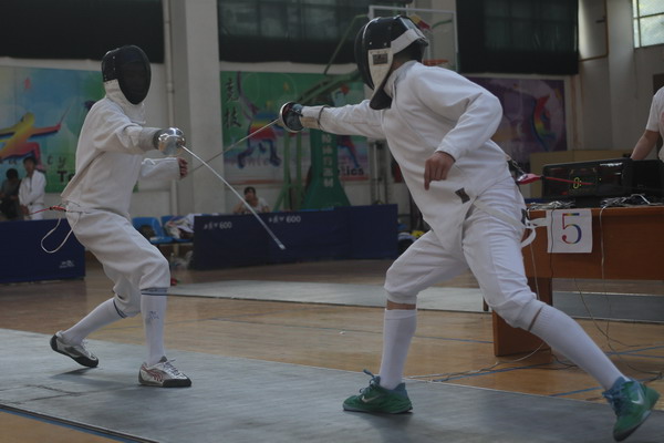 7月2日至5日,來自省內(nèi)8所高校的79名運(yùn)動員參加了陜西省教育廳主辦,省學(xué)生體育協(xié)會、西安文理學(xué)院承辦的“2015年陜西省學(xué)生擊劍錦標(biāo)賽”。我校由宗鑫、王皓、馮一帆組成的男子重劍代表隊(duì)和由陳意聲、安婷、倪晴慧、張琪組成的女子重劍代表隊(duì)再獲男、女重劍團(tuán)體冠軍。其中,宗鑫、王皓分別獲得男子重劍個人賽第二名和第三名;陳意聲、倪晴慧分別獲得女子重劍個人賽第二名、第三名。