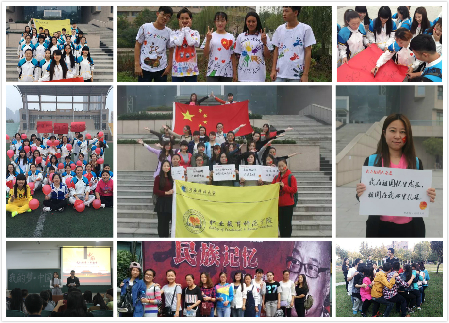 職業(yè)教育師范學(xué)院團(tuán)委以加強(qiáng)團(tuán)支部建設(shè)、增強(qiáng)團(tuán)員意識為主旨,以開闊眼界長見識、增強(qiáng)能力長才干為目標(biāo),鼓勵并指導(dǎo)學(xué)院各團(tuán)支部在中國人民抗日戰(zhàn)爭暨世界反法西斯戰(zhàn)爭勝利70周年之際開展“銘記歷史不忘根、砥礪前行有力量”、在慶祝祖國66歲生日之際開展“團(tuán)結(jié)奮進(jìn)共筑中國夢”系列主題團(tuán)日活動,實(shí)現(xiàn)高低年級廣參與、校內(nèi)校外雙互動、理論學(xué)習(xí)與實(shí)踐體味相結(jié)合,特色鮮明、主題突出,讓廣大團(tuán)員青年在學(xué)習(xí)緬懷中牢記時代責(zé)任,在感恩祝福中奮發(fā)圖強(qiáng),在主題教育中不斷成長。