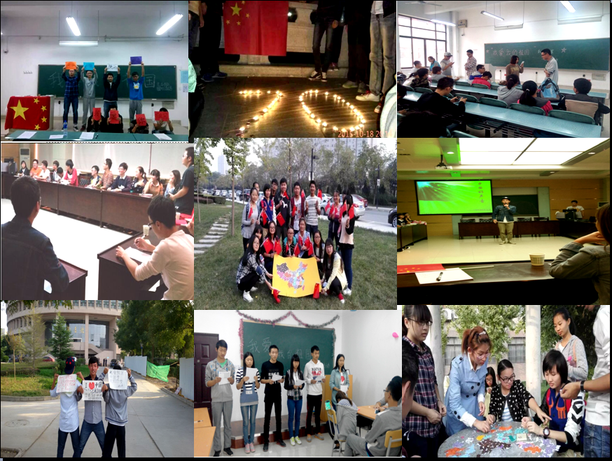 輕工學(xué)院2014級19個團(tuán)支部于10月期間先后開展了“我愛我的祖國”主題團(tuán)日活動,覆蓋團(tuán)員近600人。此次主題團(tuán)日活動引領(lǐng)各支部團(tuán)員青年在“愛國、愛團(tuán)、愛?!比齻€層面開展了涵蓋黨史競賽、歌唱紅歌、愛國影評、我與國旗合影、繪制祖國美景、清掃站牌、軍事訓(xùn)練、“中國好聲音版愛國歌曲競賽”等系列活動,生動詮釋了團(tuán)員青年的愛國之情,激發(fā)了團(tuán)員的使命感和責(zé)任感。
