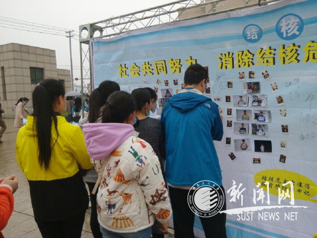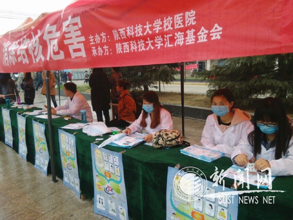 3月24日是第21個(gè)“世界防結(jié)核日”,本年度的國(guó)際宣傳主題是“你我共同參與依法防控結(jié)核”。為進(jìn)一步在校園中宣傳普及結(jié)核病防治知識(shí),傳播積極健康的生活理念,由校醫(yī)院主辦、匯?;饡?huì)承辦的我校首屆題為“社會(huì)共同努力,消除結(jié)核危害”的宣傳互動(dòng)活動(dòng)于3月24日上午在沁園廣場(chǎng)開展。