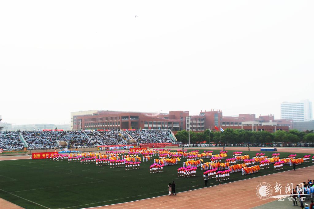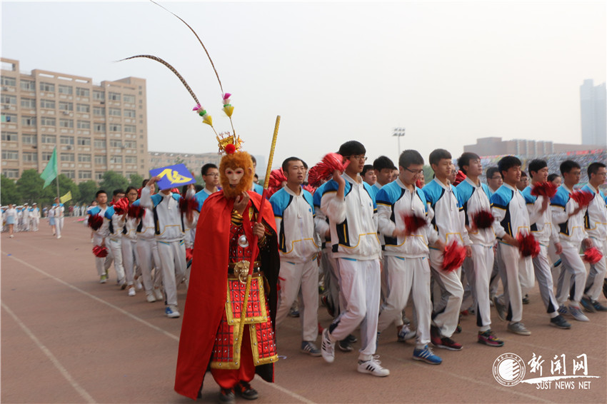 開幕式簡樸而熱烈。在“創(chuàng)新、開放、共享,學(xué)科、人才、質(zhì)量”六大辦學(xué)理念大幅標(biāo)語牌的引領(lǐng)下,運動員、裁判員、志愿者、競技類體育社團(tuán)等代表隊精神抖擻、意氣風(fēng)發(fā)地依次經(jīng)過主席臺前。他們各具特色、個性鮮明,經(jīng)濟(jì)與管理學(xué)院代表隊中的少數(shù)民族代表,展現(xiàn)了民族團(tuán)結(jié)融合的風(fēng)貌;環(huán)境科學(xué)與工程學(xué)院代表隊請來了象征威武勇敢的“孫大圣”;體育競技社團(tuán)代表隊的自行車隊、輪滑隊更是活力飛揚,充分展現(xiàn)了我校師生團(tuán)結(jié)奮進(jìn)、昂揚向上的精神面貌。