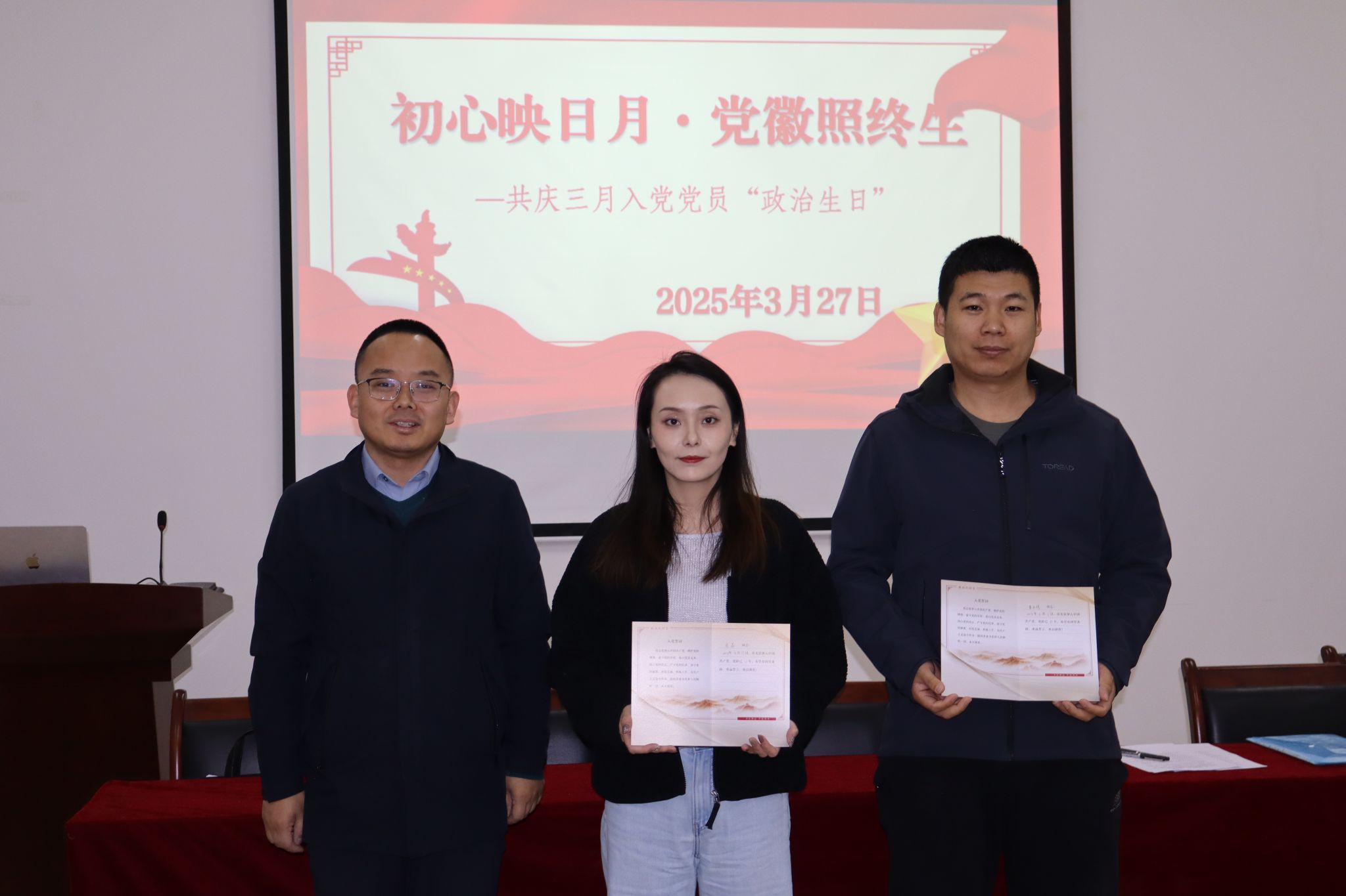 儀式第一項由祁懷遠(yuǎn)為三月過政治生日黨員程菡、秦永修兩名教師黨員頒發(fā)“政治生日”卡,過“政治生日”黨員重溫入黨誓詞。