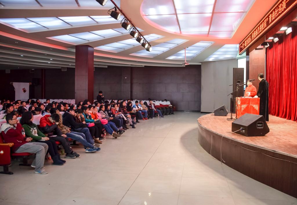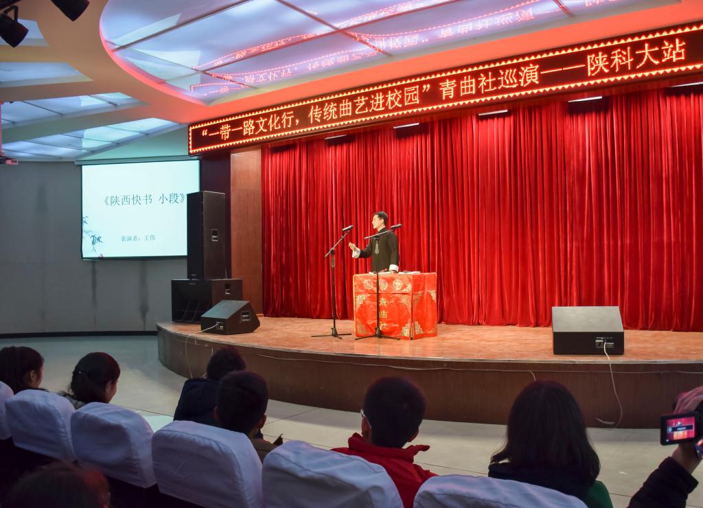 “一帶一路文化行,傳統(tǒng)曲藝進(jìn)校園”,青曲社巡演——陜科大站于12月11日下午十四時在大學(xué)生活動中心開演。兩個小時、五個節(jié)目,臺上相聲藝術(shù)家們表演酣暢淋漓,臺下觀眾觀看投入、樂在其中。