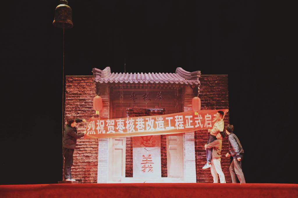 我校話劇作品《棗核巷》由南璐編劇,李俊強、李磊導(dǎo)演,12月4日在文體館進行首演。該劇講述了一條有著百余年歷史的小巷,飽經(jīng)滄桑和磨難的發(fā)展歷程。展現(xiàn)了時代和人的心理情感上的發(fā)展變化。劉薇薇和劉芳芳就是在這樣的背景下成長起來的兩個年輕人,她們倆勤奮好學(xué)、努力上進,一心想著改變自己和小巷的命運,卻因為命運的選擇最終走上了兩條截然不同的道路:劉薇薇與高富帥李鑫喆走在了一起,與原來的男朋友-小巷里的發(fā)小趙磊分了手,打算畢了業(yè)就和李鑫喆結(jié)婚,去過富裕的生活;而妹妹劉芳芳卻依然保持著本色,畢業(yè)后當(dāng)了棗核巷地區(qū)的大學(xué)生村官,致力于改造本地的工作,帶動大家共同致富。然而造化弄人,李鑫喆欺騙了劉薇薇姐妹倆和棗核巷的眾鄉(xiāng)親,攜棗核巷地區(qū)改造集資款逃跑,給棗核巷造成了巨大的經(jīng)濟損失。人們不得不紛紛背井離鄉(xiāng),外出打工,只留下劉芳芳和幾位族長繼續(xù)奔走于改造工作。最后,在政府的關(guān)懷下,棗核巷終于改造成功,被迫在外漂泊的人們又重新回到了故土。