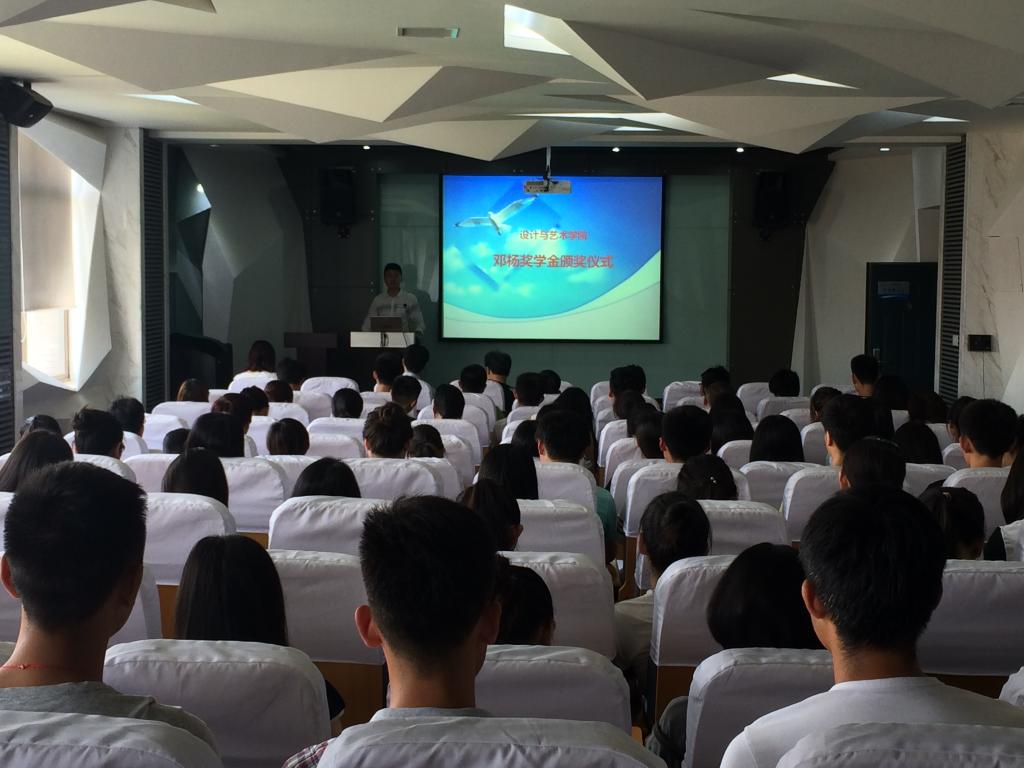 我校首個由在校學(xué)生設(shè)立的個人獎學(xué)金“鄧楊獎學(xué)金”6月9日上午在設(shè)計與藝術(shù)學(xué)院學(xué)術(shù)報告廳舉行頒獎儀式。2名設(shè)藝學(xué)院2012級學(xué)生從院黨委書記陳滿儒及獎金設(shè)立人鄧楊手中接過頒獎證書及獎金,讓她們在繁忙的學(xué)業(yè)中感覺到了畢業(yè)學(xué)長的關(guān)心和幫助。