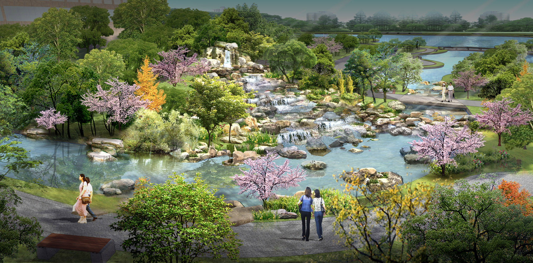 人工湖二期圖書館東北側(cè)鳥瞰效果圖