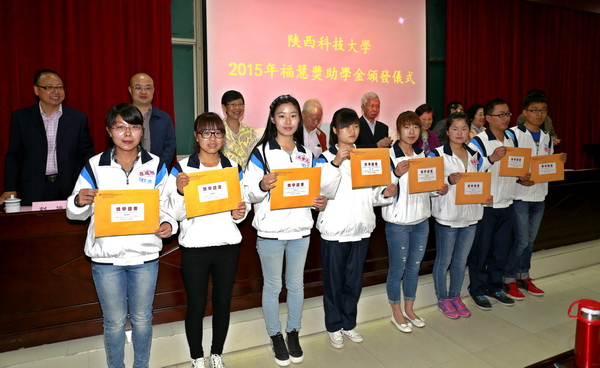 學(xué)工部部長劉運(yùn)宣讀了《陜西科技大學(xué)2015年?;鄞壬苹饡坌莫勚鷮W(xué)金受助學(xué)生名單》,共有86名同學(xué)獲得了10萬元的獎助學(xué)金。香港?;鄞壬苹饡募钨e和與會領(lǐng)導(dǎo)為受助學(xué)生頒發(fā)了證書和獎助學(xué)金。