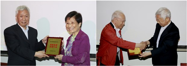 李樹暉代表學(xué)校分別向香港?;鄞壬苹饡⑺蝹ノ暮退魏窝嗝舴驄D贈送了牌匾。