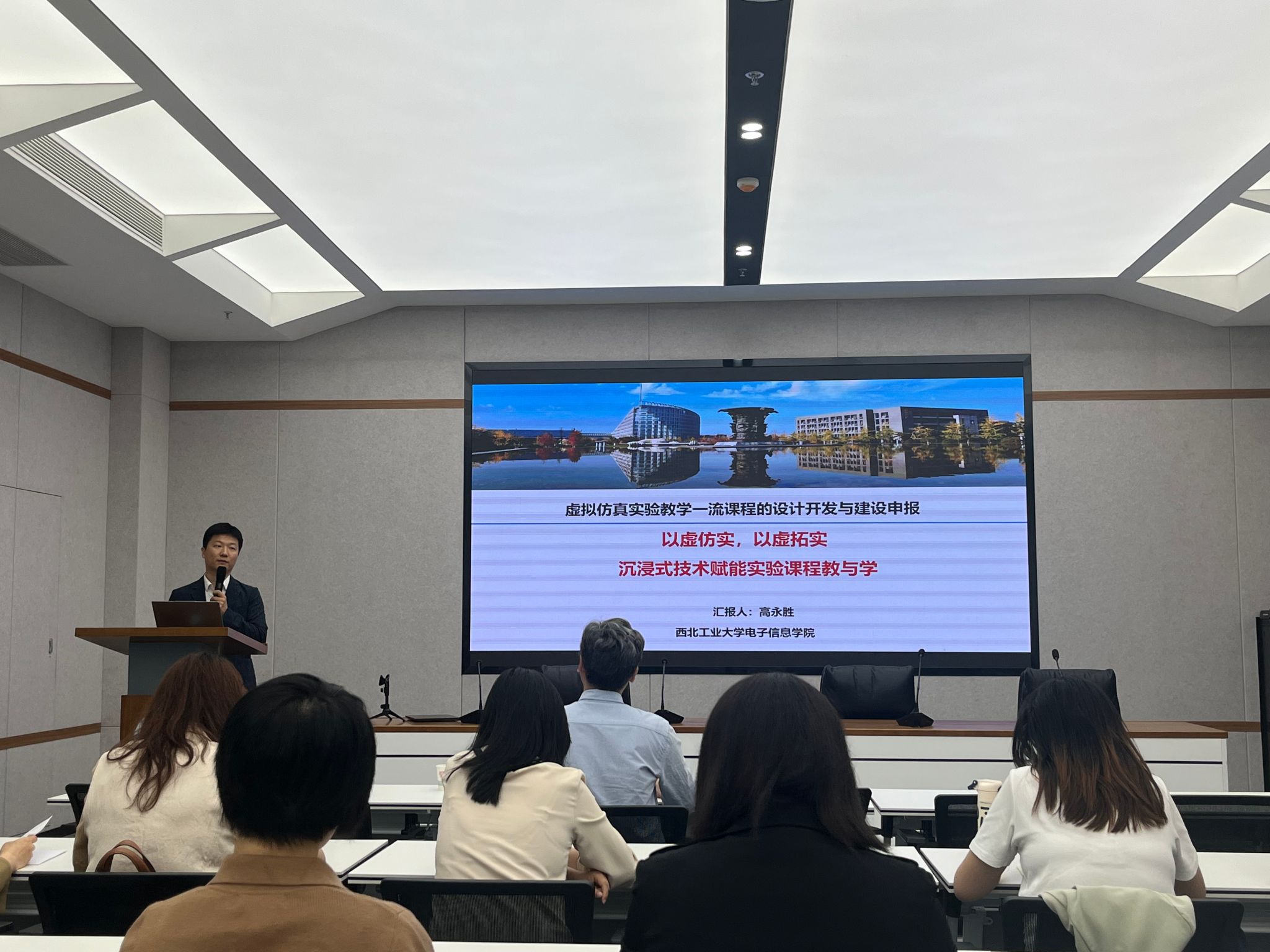會上,高永勝以《虛擬仿真實(shí)驗(yàn)教學(xué)一流課程的設(shè)計(jì)開發(fā)與建設(shè)申報(bào)》為題,結(jié)合西北工業(yè)大學(xué)的典型建設(shè)案例,從課程設(shè)計(jì)邏輯、技術(shù)實(shí)現(xiàn)路徑、教學(xué)模式創(chuàng)新等維度,分享了課程建設(shè)經(jīng)驗(yàn)與實(shí)踐心得。隨后,2024年校級立項(xiàng)的6位課程負(fù)責(zé)人分別圍繞課程建設(shè)情況、取得的建設(shè)成效、存在的問題以及下一步建設(shè)思路等方面依次進(jìn)行了匯報(bào)。高永勝逐一對課程建設(shè)情況進(jìn)行點(diǎn)評,他充分肯定了多數(shù)課程團(tuán)隊(duì)在課程框架搭建、教學(xué)場景模擬等方面取得的成效,認(rèn)為階段性成果亮點(diǎn)突出。同時(shí),也從專業(yè)視角指出共性問題:教學(xué)資源整合不足、應(yīng)用深度欠缺;課程設(shè)計(jì)在高階性、創(chuàng)新性和挑戰(zhàn)度的呈現(xiàn)上有待加強(qiáng);申報(bào)材料的邏輯架構(gòu)與亮點(diǎn)提煉需要提升。這些專業(yè)建議為后續(xù)課程優(yōu)化指明了方向。