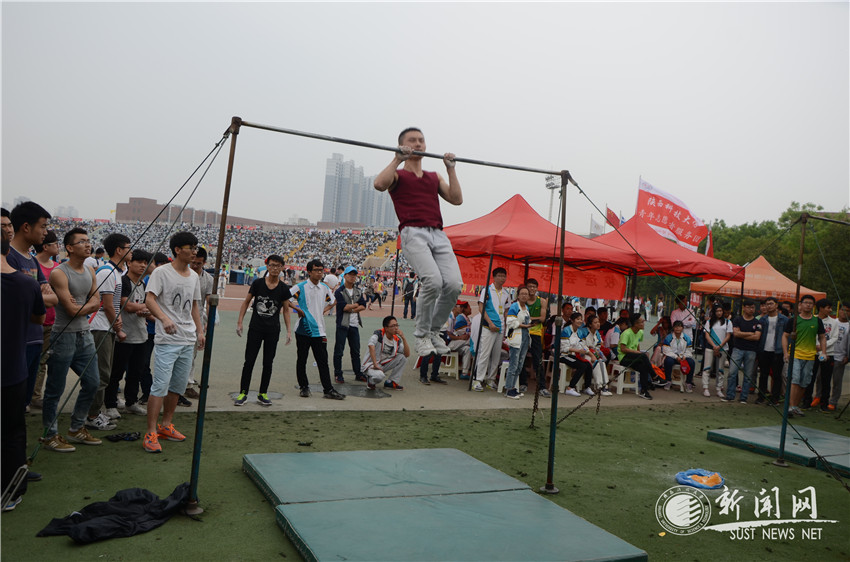 下午四點(diǎn),本屆運(yùn)動(dòng)會(huì)的新增的一個(gè)大學(xué)生團(tuán)體項(xiàng)目——引體向上比賽在標(biāo)準(zhǔn)田徑場(chǎng)西側(cè)處單杠進(jìn)行。比賽時(shí)選手們?cè)趦蓚€(gè)單杠上同時(shí)進(jìn)行,當(dāng)一個(gè)學(xué)院的一個(gè)選手在參加比賽時(shí),總是少不了其他同學(xué)的加油助威,“加油”“再來(lái)一個(gè)”一聲聲吶喊把同學(xué)們的心緊緊連在一起,選手們額頭汗水的冒出、流下,他們展現(xiàn)出了力量;咬著牙將身體抬起時(shí),他們展現(xiàn)出了意志。經(jīng)過(guò)一番激烈的角逐,機(jī)電工程學(xué)院代表隊(duì)奪得冠軍,總成績(jī)?yōu)?80個(gè),材料學(xué)院代表隊(duì)緊隨其后,總成績(jī)?yōu)?78個(gè)。