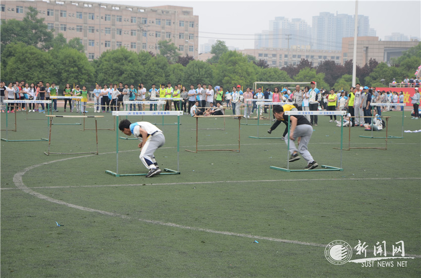 4男4女的趣味接力跨欄作為第一次出現(xiàn)在運(yùn)動(dòng)會(huì)上的比賽項(xiàng)目,它的趣味性在于跨欄有兩種欄高,矮桿跨越,高桿鉆過(guò),這就使得選手們的身手靈活、配合默契成為取勝的關(guān)鍵。比賽時(shí),有一隊(duì)的首發(fā)男生鉆桿時(shí)撞掉了桿,但隊(duì)友們并未責(zé)怪他,他們?cè)诒荣惤Y(jié)束時(shí)向獲得第一的隊(duì)伍歡呼、吶喊,大家的臉上都洋溢著開(kāi)心的笑容。
