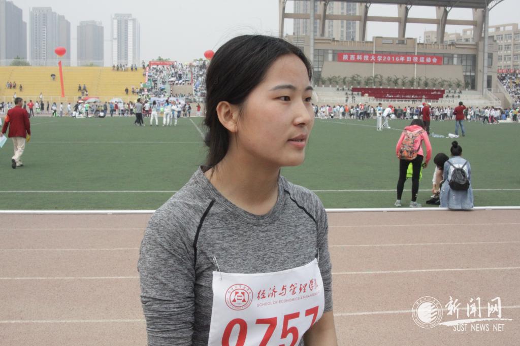 來(lái)自經(jīng)濟(jì)與管理學(xué)院的馮胭在女子跳遠(yuǎn)比賽中表現(xiàn)突出。因?yàn)橘惽暗挠?xùn)練,她認(rèn)真而積極,終于功夫不負(fù)有心人,名列女子跳遠(yuǎn)榜首。