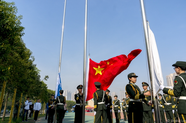 開幕式上,他們是運(yùn)動方陣的開場嘉賓,是守護(hù)國旗的“校園天使”,在激揚(yáng)的國歌伴奏中和同學(xué)們的集體注視下,升起手中的旗幟,一展運(yùn)動雄風(fēng)氣息。之后,又立馬化身為“最佳守門員”,嚴(yán)格把控外來人員進(jìn)出運(yùn)動會場的秩序,雖面容嚴(yán)肅,寡言少語,可這恰恰是他們工作態(tài)度的最真誠的彰顯。