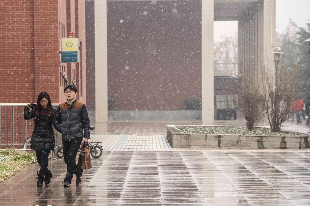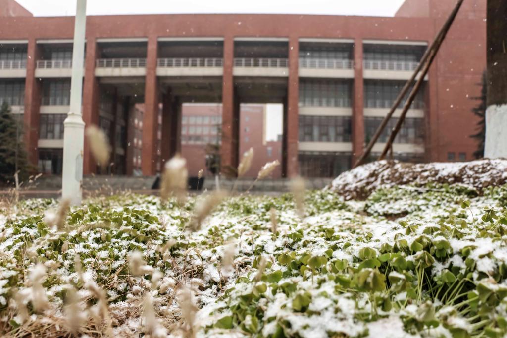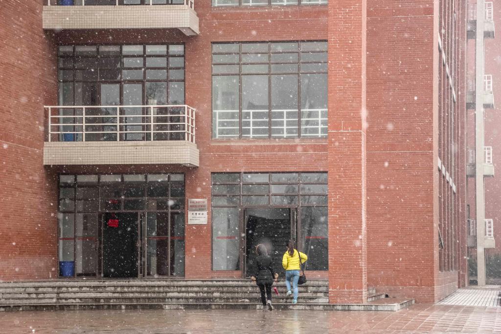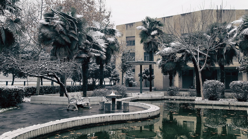 2016年1月12日,新年的第一場雪普降西安。她迎著萬眾期盼的目光,帶著2015年喜悅的記憶,飛向大地,飛入科大校園。清晨的半明半暗之際,她在咸陽校區(qū)的?;丈蠟⑾乱黄匮诺陌祝?br />她輕盈地拂過老圖書館外的馬賽克壁畫;她在老體育館外留下一場驚心動魄的靜美;當(dāng)這個“冬之精靈”來到西安校區(qū)時,圖書館和它的倒影雙雙凝成了一首詩;轉(zhuǎn)眼之間,她又定格在了一尊小小的像上;或是讓人在純純的潔白上留下屬于自己的印記;天愈來愈亮,青松在她的舞動中依然挺拔;她吻著草坪,來年的春天會奉送新綠;銀裝素裹的大地?zé)o處不是她描繪的畫意;她擁抱大樓,欲飛的蒼龍顯得如此安然;本是玲瓏剔透的清凈體,何曾染過一絲塵埃;她最終落在新綠上找到自己的歸宿——“冬天來了,春天還會遠(yuǎn)嗎?”雪來了,她笑著、飛舞著,向我們親切地打著招呼——一個人的道路,因為她的陪伴不再孤單;兩個人踩著碎銀,走出歡快的清歌;一群人在這洋洋灑灑的世界里沖破霧的迷茫,踏出無悔的青春節(jié)拍……