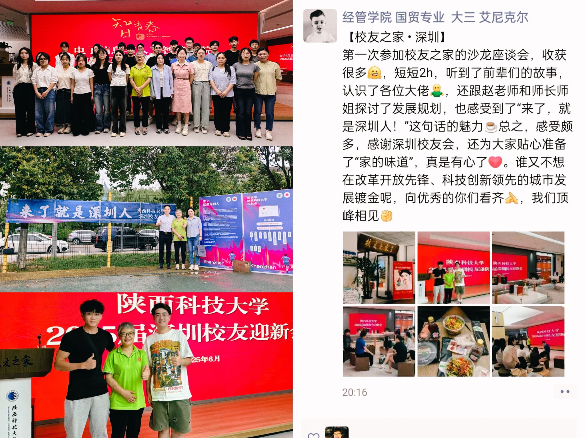 恰逢陜西科技大學(xué)2025屆畢業(yè)典禮,深圳校友會(huì)推出“深?lèi)?ài)校友·灣區(qū)啟航——來(lái)了就是深圳人”系列活動(dòng),將迎新活動(dòng)前置到畢業(yè)現(xiàn)場(chǎng)。通過(guò)畢業(yè)生座談會(huì)、典禮擺攤迎新、線上社群對(duì)接等方式,提前與應(yīng)屆畢業(yè)生建立緊密聯(lián)系。6月23日,三場(chǎng)迎新溝通座談會(huì)在“校友之家”舉行,校黨委副書(shū)記李學(xué)軍、學(xué)工部、校友總會(huì)、電智學(xué)院與深圳校友會(huì)骨干成員、畢業(yè)生及在校生代表齊聚一堂。校友們分享自身經(jīng)歷,介紹深圳產(chǎn)業(yè)環(huán)境、人才政策與校友資源網(wǎng)絡(luò),還為同學(xué)們送上玫瑰醋飲料和“三秦套餐”,讓畢業(yè)生尚未抵達(dá)深圳,便找到了“組織”,堅(jiān)定了南下就業(yè)的決心。