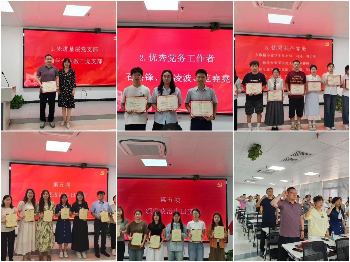 學(xué)院黨委在表彰會(huì)上同時(shí)為第二季度入黨的黨員同志過集體“政治生日”,為41名師生黨員贈(zèng)送政治生日賀卡和祝福,與會(huì)黨員面對(duì)黨旗重溫入黨誓詞。