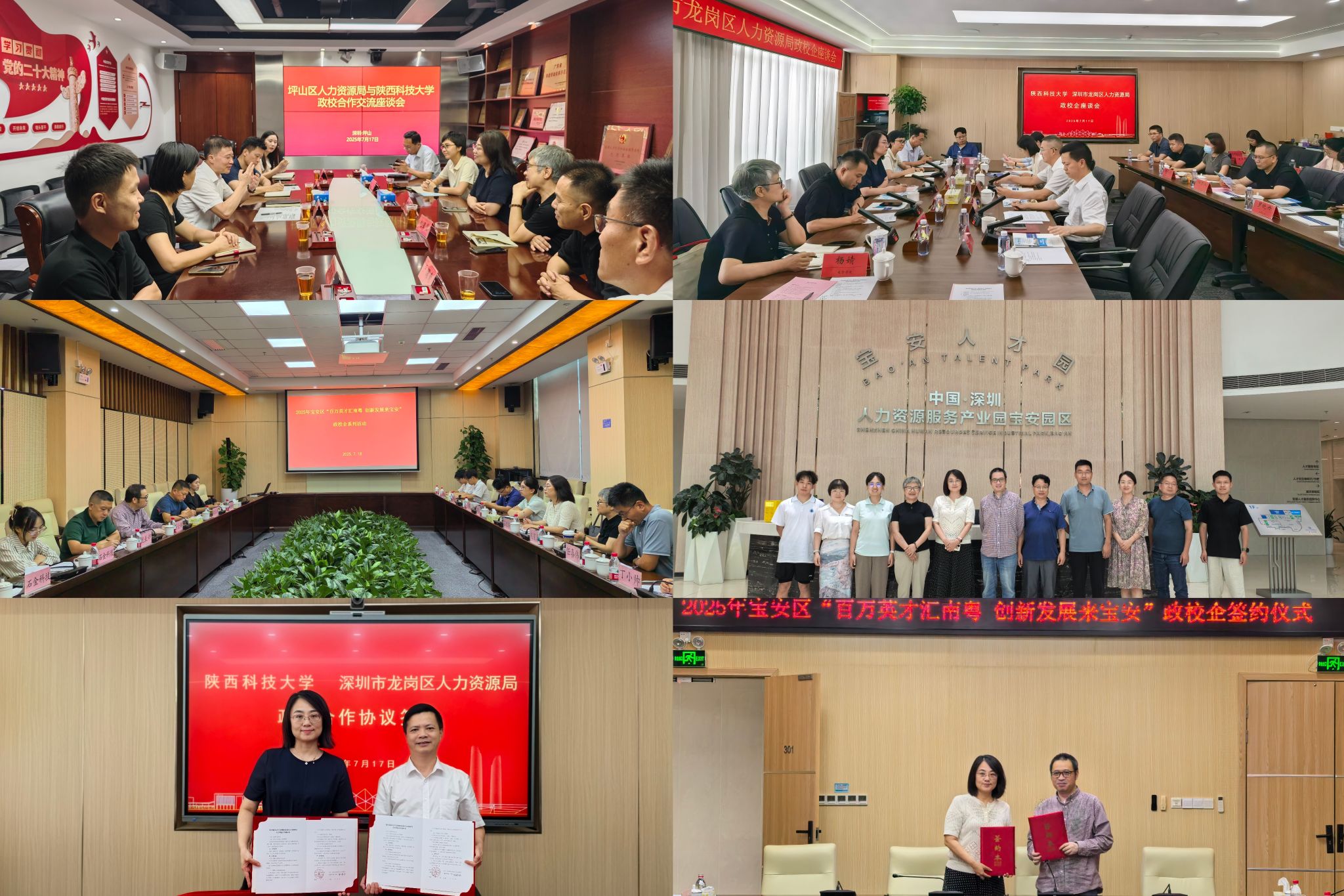 在深化校地合作方面,團(tuán)隊先后拜訪了深圳市坪山區(qū)、龍崗區(qū)、寶安區(qū)人力資源局。交流中,帶隊領(lǐng)導(dǎo)介紹了學(xué)校發(fā)展歷程、辦學(xué)特色及2026屆畢業(yè)生情況,推介了人才資源。雙方就地方人才政策、企業(yè)用人需求及招聘計劃進(jìn)行了探討,并與龍崗區(qū)、寶安區(qū)人力資源局簽訂了校地合作協(xié)議,為后續(xù)人才輸送和地方引智搭建了平臺。