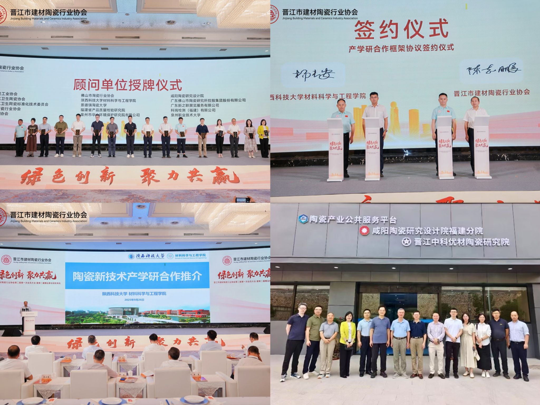 會(huì)上,材料學(xué)院黨委書記楊長(zhǎng)安與晉江市建材陶瓷行業(yè)協(xié)會(huì)簽署產(chǎn)學(xué)研合作框架協(xié)議;副院長(zhǎng)歐陽(yáng)海波介紹了材料學(xué)院的學(xué)科特色與優(yōu)勢(shì),重點(diǎn)推介了大尺寸陶瓷薄板強(qiáng)韌化技術(shù)、陶瓷釉面裝飾-功能一體化技術(shù)等11項(xiàng)科技成果。