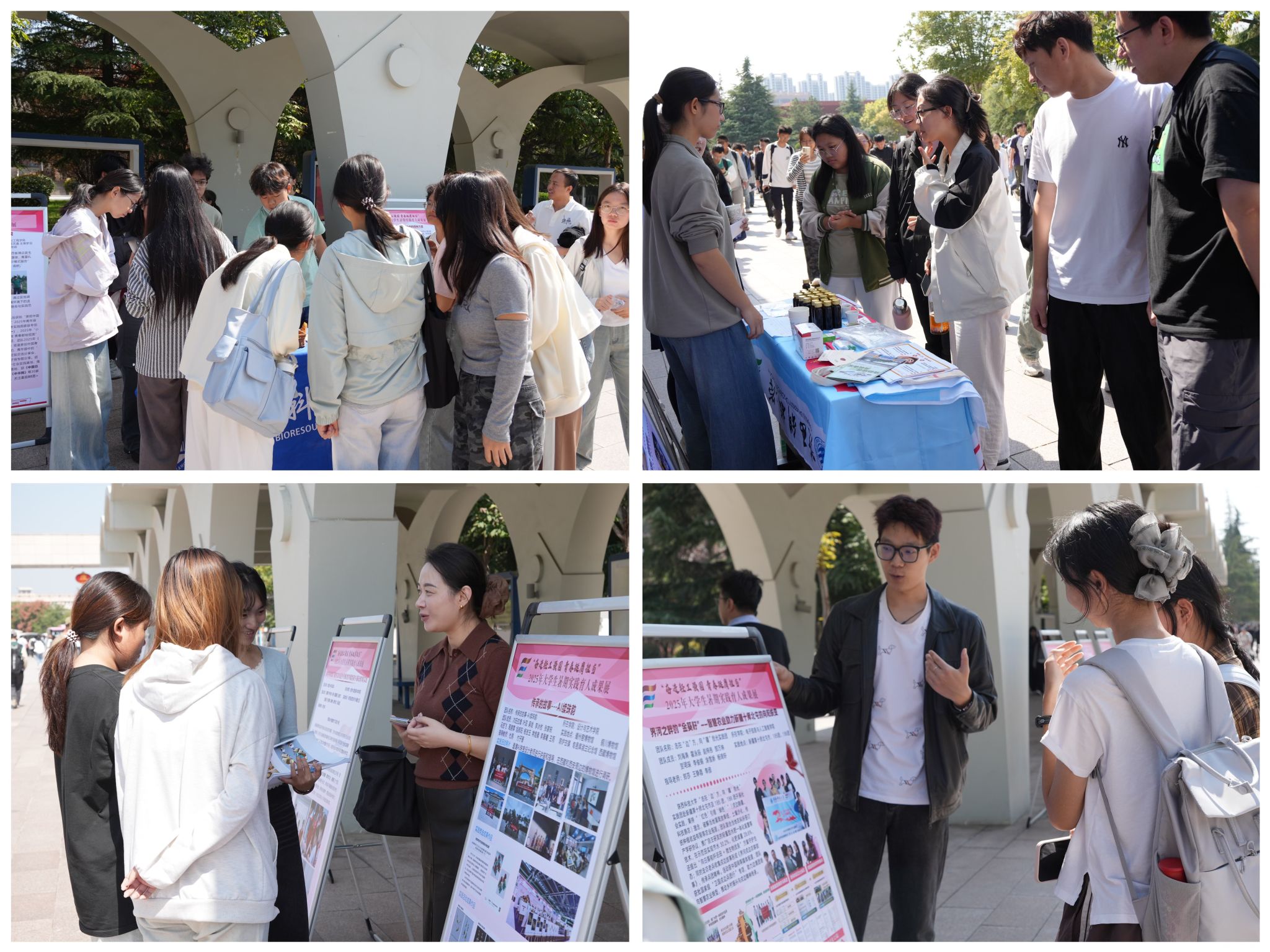 各實踐團隊通過圖文展板、現場講解等多種形式,生動講述了他們在實踐中的創(chuàng)新探索與豐碩成果。從智能農機到非遺數字文創(chuàng),從紅色紀錄片到生態(tài)治理方案,每一項成果都是同學們“把論文寫在祖國大地上”的初心與擔當的鮮活例證。