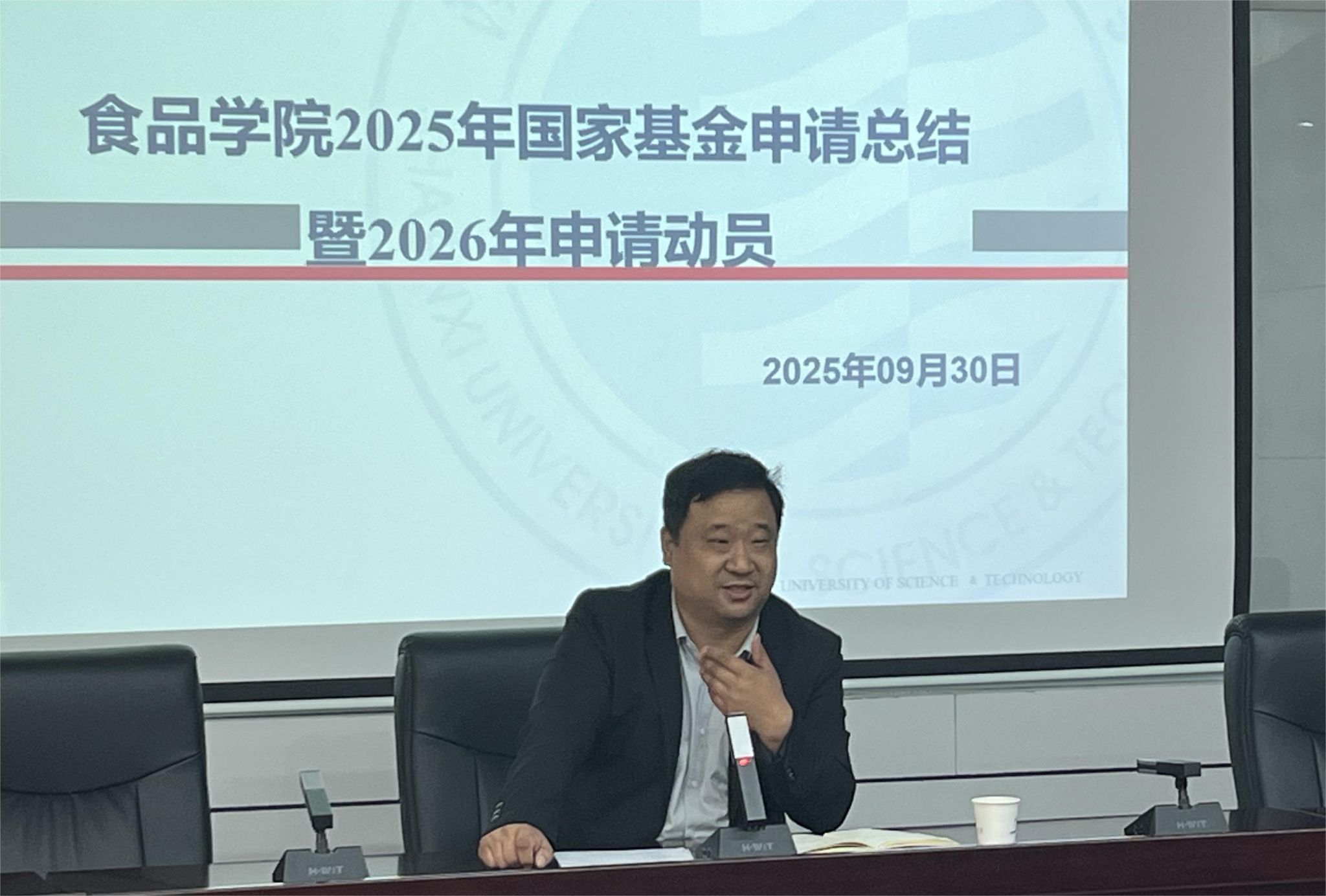 9月30日上午,食品學(xué)院召開(kāi)2026年國(guó)家自然科學(xué)基金和人才項(xiàng)目申報(bào)動(dòng)員會(huì),助力學(xué)院教師精準(zhǔn)把握申報(bào)政策,凝聚團(tuán)隊(duì)攻堅(jiān)合力,提升學(xué)院的科研競(jìng)爭(zhēng)力。會(huì)議特邀科技處副處長(zhǎng)徐衛(wèi)濤和校人才工作辦公室干事黨梓睿作專題報(bào)告。2026年國(guó)家自然科學(xué)基金和人才項(xiàng)目申報(bào)的全體教師參加會(huì)議,會(huì)議由學(xué)院副院長(zhǎng)姚曉琳主持。