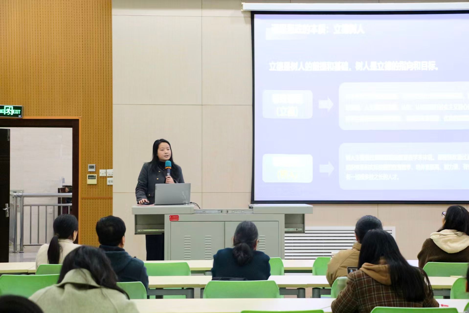 為深入推進(jìn)課程思政與現(xiàn)代信息技術(shù)的深度融合,探索數(shù)智化時(shí)代教學(xué)創(chuàng)新路徑,10月21日,教務(wù)處聯(lián)合教師發(fā)展中心舉辦“課程思政+智慧課程建設(shè)”專題培訓(xùn)會(huì)。本次培訓(xùn)特邀陜西省課程思政教學(xué)名師和教學(xué)標(biāo)兵、西北農(nóng)林科技大學(xué)李侃侃副教授與超星泛雅集團(tuán)運(yùn)營(yíng)經(jīng)理陳興英擔(dān)任主講,我校獲批“人工智能+課程思政”建設(shè)項(xiàng)目的80余位教師參加培訓(xùn),培訓(xùn)會(huì)由教務(wù)處副處長(zhǎng)陳英主持。