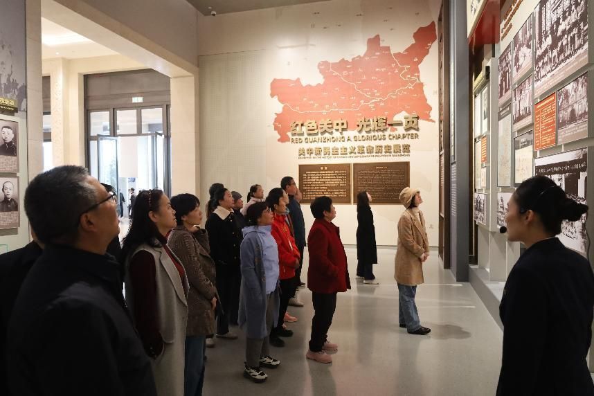 在關(guān)中革命紀(jì)念館內(nèi),大家在講解員的引導(dǎo)下,依次參觀了“創(chuàng)建關(guān)中革命根據(jù)地”“領(lǐng)導(dǎo)群眾運動”“團結(jié)各界力量”等核心展區(qū),通過珍貴文物、歷史照片、場景復(fù)原等載體,系統(tǒng)了解了關(guān)中地區(qū)人民群眾在中國共產(chǎn)黨的領(lǐng)導(dǎo)下英勇革命的偉大歷程,特別是習(xí)仲勛等老一輩革命家矢志不渝的革命信念和崇高品格。
