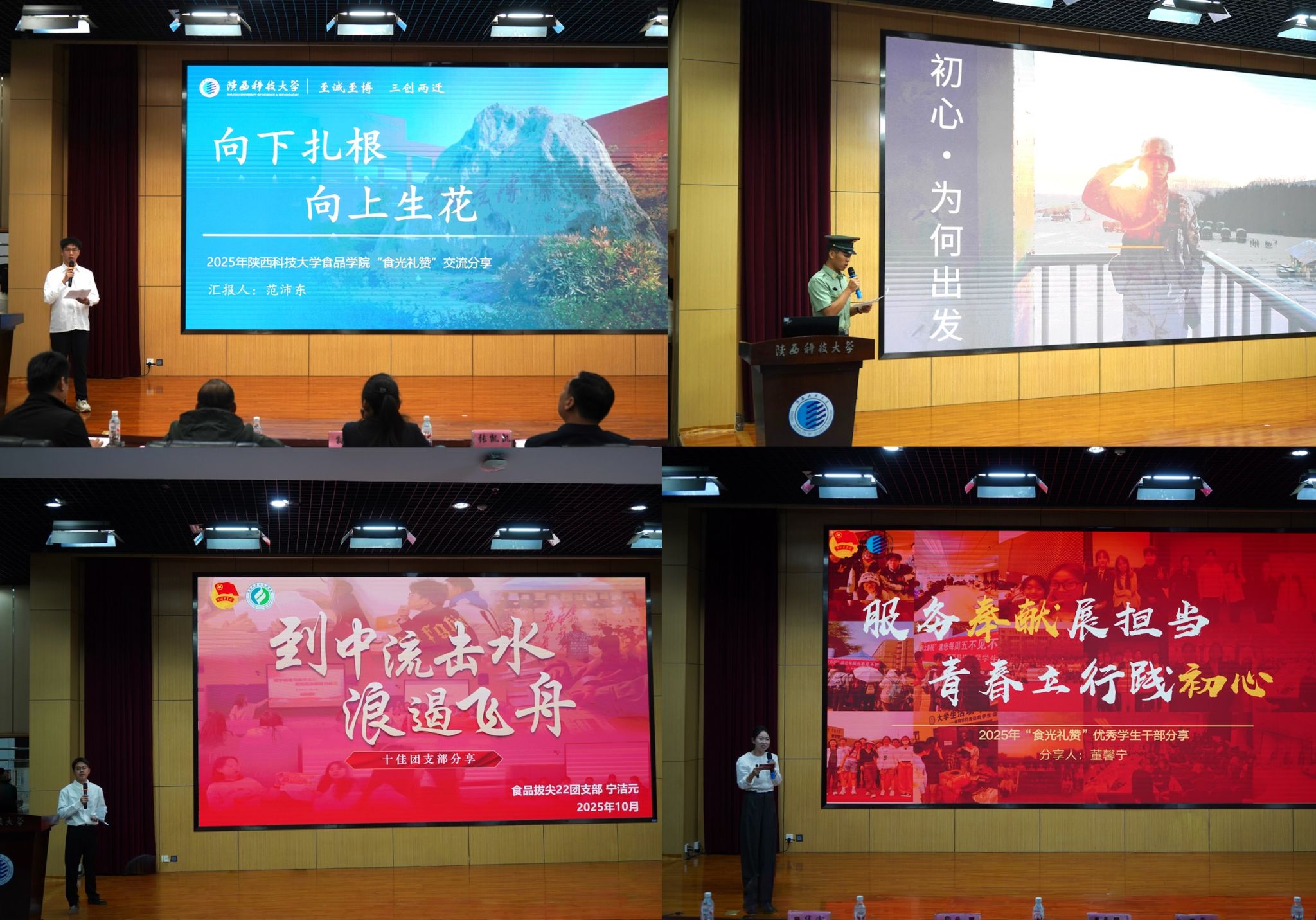 活動(dòng)以“食光啟航 砥礪前行”為主題,設(shè)立“食光”模范獎(jiǎng)、“食光”拼搏獎(jiǎng)、“食光”衛(wèi)國(guó)獎(jiǎng)、“食光”凝聚獎(jiǎng)、“食光”卓越獎(jiǎng)、“食光”桃李獎(jiǎng)等十余個(gè)類(lèi)別的獎(jiǎng)項(xiàng),集中表彰上一年度表現(xiàn)優(yōu)秀的典型個(gè)人和先進(jìn)集體。優(yōu)秀學(xué)生代表董馨寧、張思雯、三永隆、范沛東和優(yōu)秀宿舍、十佳團(tuán)支部等先進(jìn)集體代表分別分享德智體美勞全面發(fā)展的青春故事及集體建設(shè)經(jīng)驗(yàn)。