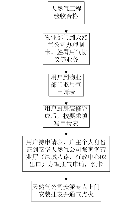 三、本次天然氣工程根據(jù)天然氣公司規(guī)定采用分戶驗收、分戶掛表模式(后附流程圖),若因住戶未按規(guī)定裝修(見2020年9月24日《關(guān)于住宅樓裝修期間天然氣設(shè)施保護的通知》),影響天然氣管道施工和驗收,對驗收通氣產(chǎn)生影響,責任由住戶承擔。