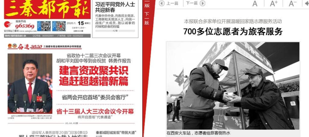三秦都市報(bào)1月15日刊發(fā)頭版新聞《700多位志愿者為旅客服務(wù)》,其中報(bào)道了我校志愿者積極參與服務(wù)春運(yùn)。