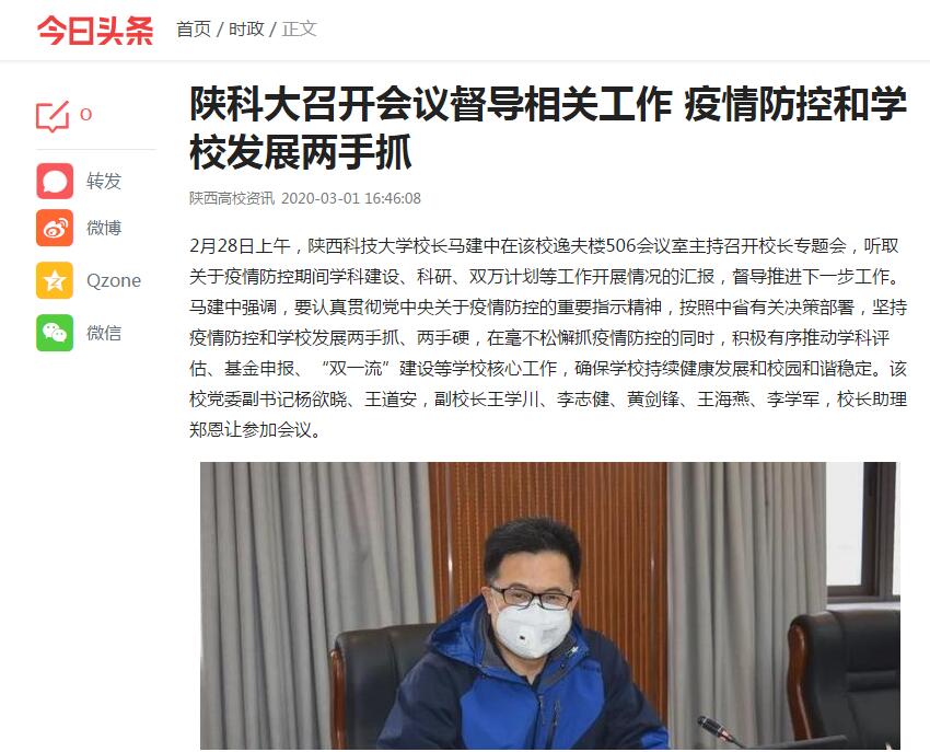 今日頭條APP:陜科大召開會議督導相關工作 疫情防控和學校發(fā)展兩手抓
