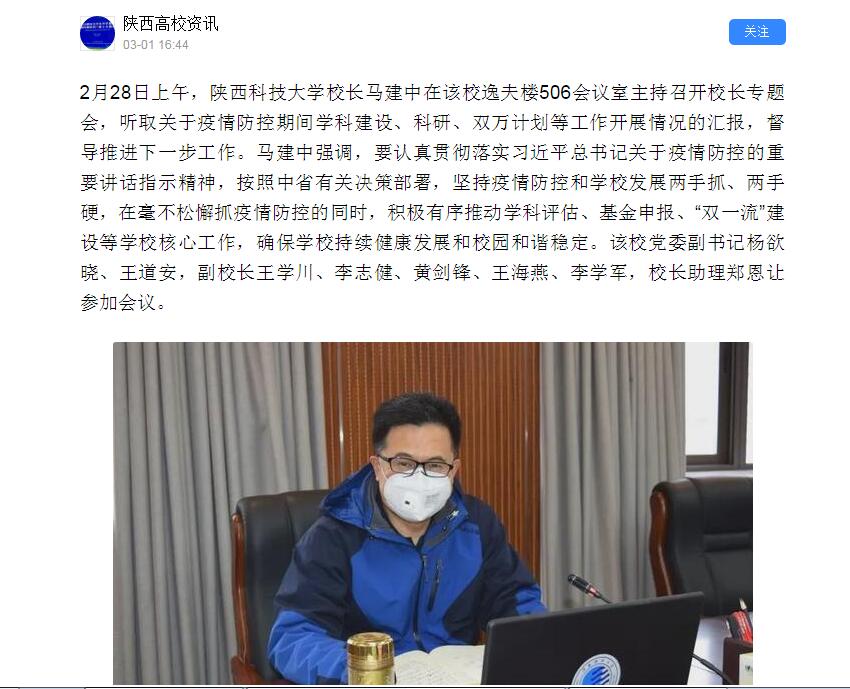 澎湃新聞客戶端:陜科大召開會議督導相關工作 疫情防控和學校發(fā)展兩手抓