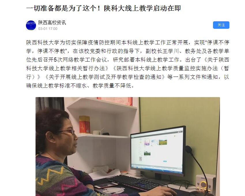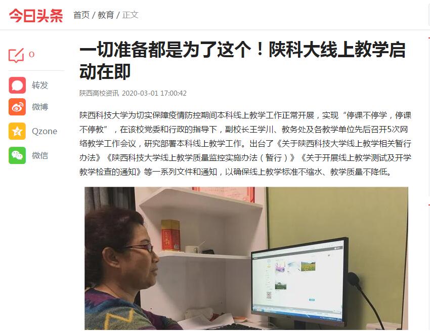 今日頭條APP:一切準(zhǔn)備都是為了這個(gè)!陜科大線上教學(xué)啟動(dòng)在即