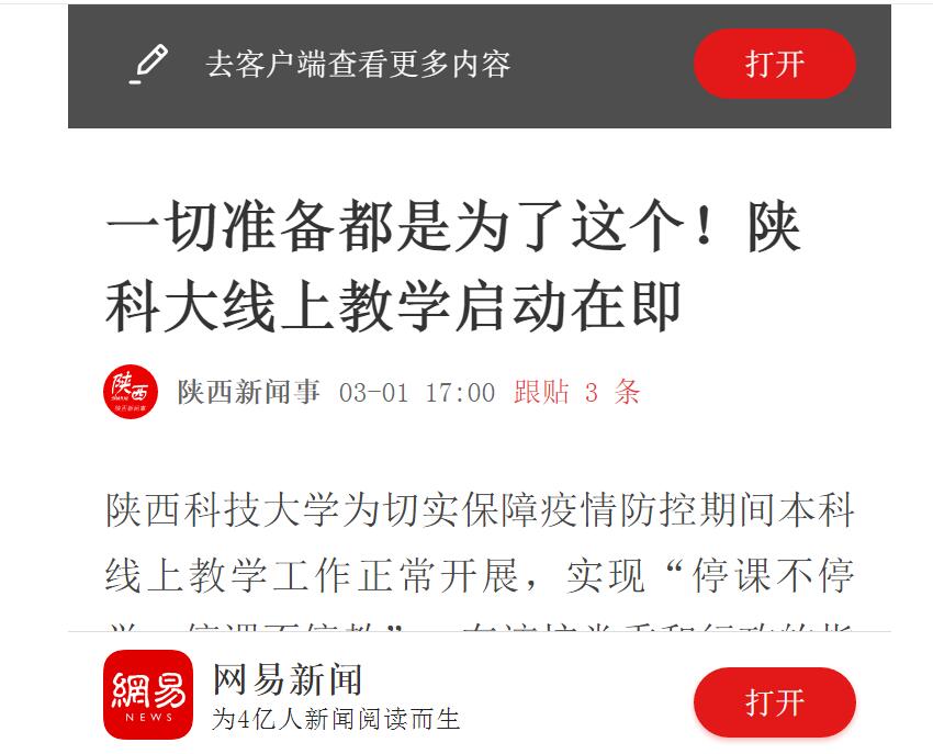網(wǎng)易新聞APP:一切準(zhǔn)備都是為了這個(gè)!陜科大線上教學(xué)啟動(dòng)在即