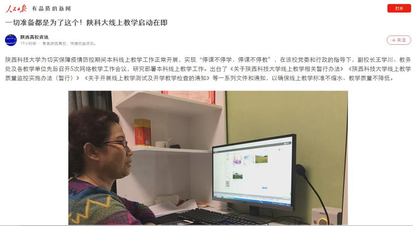 人民日?qǐng)?bào)APP:一切準(zhǔn)備都是為了這個(gè)!陜科大線上教學(xué)啟動(dòng)在即