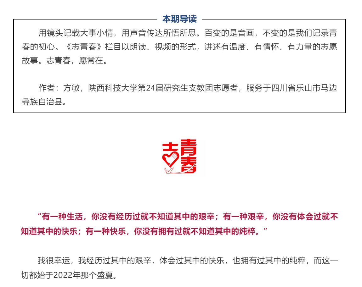 “中國青年志愿者”微信公眾號刊發(fā)我校第24屆研究生支教團(tuán)志愿者方敏的志愿故事