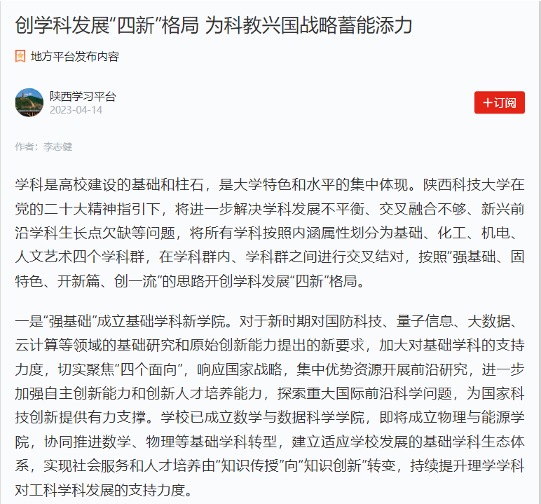 學(xué)習(xí)強(qiáng)國:創(chuàng)學(xué)科發(fā)展“四新”格局 為科教興國戰(zhàn)略蓄能添力